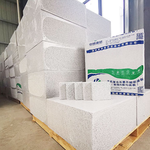 復合石墨不然保溫板,主要以無機膠凝材料、活性礦物微粉、膠粉、化學添加劑和水等為原材料,經過磨細制漿、聚苯顆粒包覆、注模后混合壓制成型注模,脫模后,在規定時間、條件下養護后經精細化切割制成的保溫板材。